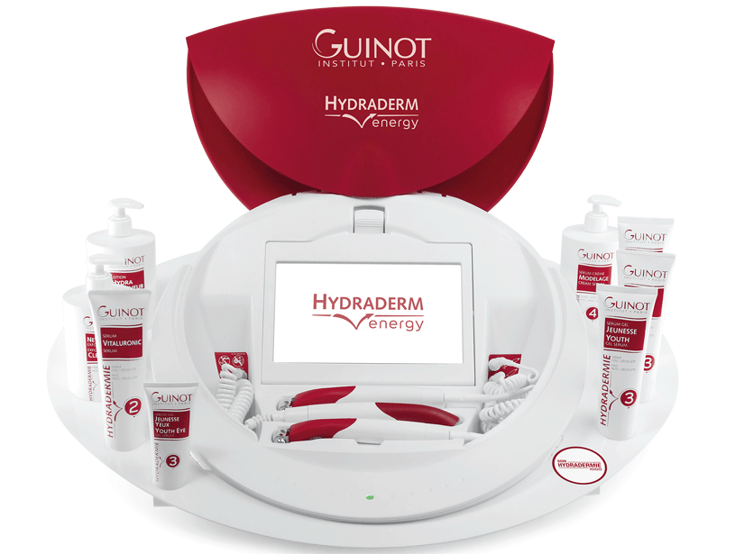 Appareil de soin breveté en exclusivité chez Guinot, Hydraderm Cellular Energy réveille l’activité cellulaire par électrostimulation pour un effet rajeunissant visible après une heure de Soin.