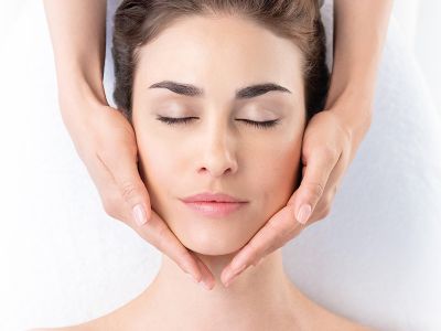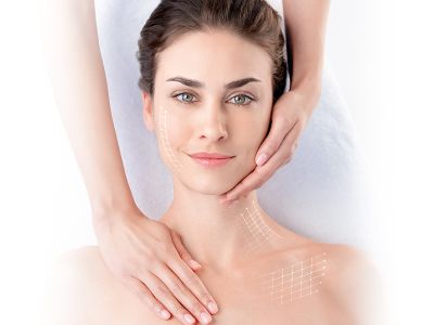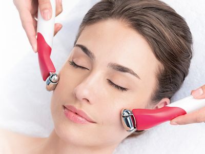 Soin lifting immédiat par stimulation musculaire. Ce soin permet de remonter les traits et de remodeler l'ovale du visage.